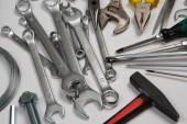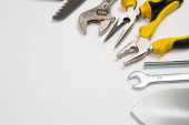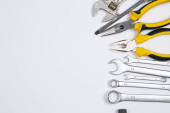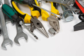 Zdjęcie "Zestaw narzędzi do naprawy w przypadku na białym tle. Różne narzędzia robocze lub budowlane. Klucze, szczypce, śrubokręt. Widok z góry" może być wykorzystywane do celów osobistych i komercyjnych zgodnie z warunkami zakupionej licencji Royalty-free. Obraz jest dostępny do pobrania w jakości wysokiej rozdzielczości do 5760x3840.