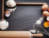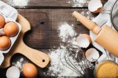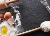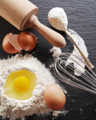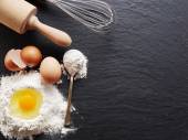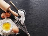 Przygotowanie ciasta. Pieczenia składniki: jaj i mąki.