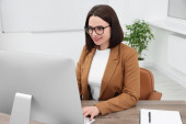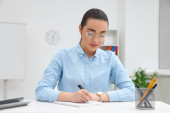 Zdjęcie "Szczęśliwy młody stażysta pracujący przy stole w nowoczesnym biurze" może być wykorzystywane do celów osobistych i komercyjnych zgodnie z warunkami zakupionej licencji Royalty-free. Obraz jest dostępny do pobrania w jakości wysokiej rozdzielczości do 5760x3840.