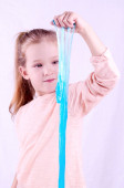 Dziewczynki na jej pierwsze zabawki koń na białym tle