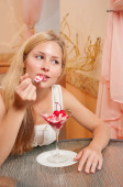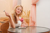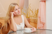 Młoda kobieta w kawiarni.