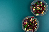 Sałatka z duszonej chard, buraki i marchewki na betonowym stole kuchennym. Zdrowa, smażona chard szwajcarski z warzywami.