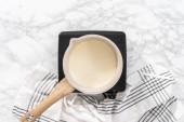 Zdjęcie "Leżeć płasko. Przygotowanie syropu cukrowego do ciasta babeczkowego w rondlu." może być wykorzystywane do celów osobistych i komercyjnych zgodnie z warunkami zakupionej licencji Royalty-free. Obraz jest dostępny do pobrania w jakości wysokiej rozdzielczości do 5760x3840.