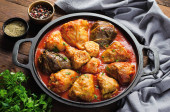 Zdjęcie "Homemade Cabbage rolls with meat, rice and vegetables. Stuffed cabbage leaves also known as sarma, golubtsy, dolma on Dark Rustic Background" może być wykorzystywane do celów osobistych i komercyjnych zgodnie z warunkami zakupionej licencji Royalty-free. Obraz jest dostępny do pobrania w jakości wysokiej rozdzielczości do 5760x3840.
