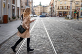 Zdjęcie "Stylowa kobieta w płaszczu i chodząca ulicą miejską. Modny modny styl" może być wykorzystywane do celów osobistych i komercyjnych zgodnie z warunkami zakupionej licencji Royalty-free. Obraz jest dostępny do pobrania w jakości wysokiej rozdzielczości do 5760x3840.