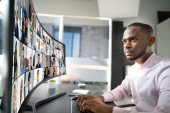 Zdjęcie "Wirtualne spotkanie webinarne online Prezentacja. Oglądanie banneru konferencji" może być wykorzystywane do celów osobistych i komercyjnych zgodnie z warunkami zakupionej licencji Royalty-free. Obraz jest dostępny do pobrania w jakości wysokiej rozdzielczości do 5760x3840.
