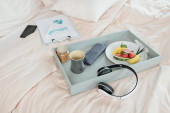 Zdjęcie "Biurko z książkami i owocami obok łóżka w sypialni domu opieki" może być wykorzystywane do celów osobistych i komercyjnych zgodnie z warunkami zakupionej licencji Royalty-free. Obraz jest dostępny do pobrania w jakości wysokiej rozdzielczości do 5760x3840.