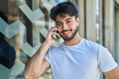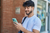 Zdjęcie "Młody Latynos w plecaku rozmawiający na ulicy" może być wykorzystywane do celów osobistych i komercyjnych zgodnie z warunkami zakupionej licencji Royalty-free. Obraz jest dostępny do pobrania w jakości wysokiej rozdzielczości do 5760x3840.