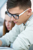 portret młodej grupy studentów, zwracając uwagę w klasie.