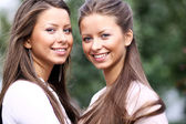 dwie kobiety, szepcząc i uśmiechnięty zakupy wewnątrz centrum handlowego