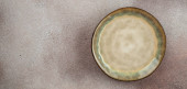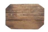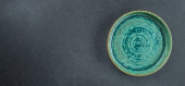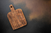 Cięcie drewna lub podawanie jedzenia na szarym tle. Długi sztandar. widok z góry.