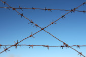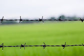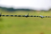 Prywatna własność dużych działek pól uprawnych, ogrodzonych drutem kolczastym