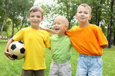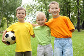 mały chłopiec w parku z piłką