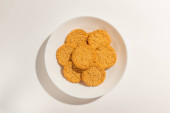 Ćwierć szarlotki na białym talerzu. Tarta jabłkowa została pocięta na 4 części. Koncepcja cięcia czegoś na ćwiartki i połówki. Przestrzeń kopiowania, jasne białe tło.