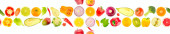 Wiele świeżych owoców i warzyw na białym tle, projekt baner
