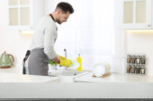 Zdjęcie "Kobieta wycieranie czyste danie w kuchni, skupić się na pusty stół" może być wykorzystywane do celów osobistych i komercyjnych zgodnie z warunkami zakupionej licencji Royalty-free. Obraz jest dostępny do pobrania w jakości wysokiej rozdzielczości do 5760x3840.