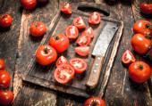 Zdjęcie "Świeże pomidory na gałęzi na desce do krojenia. Na drewnianym tle. Wysokiej jakości zdjęcie" może być wykorzystywane do celów osobistych i komercyjnych zgodnie z warunkami zakupionej licencji Royalty-free. Obraz jest dostępny do pobrania w jakości wysokiej rozdzielczości do 5760x3840.