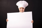 Dziewczyna z kapelusz kucharzy i billboardy na białym tle