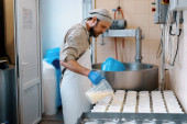 producent sera w mundurze sprawia, że ser stawia formy do wylewania procesu produkcji sera małe firmy i przedsiębiorczość