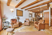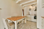 Zdjęcie "aneks kuchenny ze stołem i krzesłami przed ladą, jest otwarte okno na zewnątrz" może być wykorzystywane do celów osobistych i komercyjnych zgodnie z warunkami zakupionej licencji Royalty-free. Obraz jest dostępny do pobrania w jakości wysokiej rozdzielczości do 5760x3840.