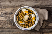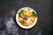 Zdjęcie "Bubur ayam, indonezyjska owsianka ryżowa z rozdrobnionym kurczakiem i podawana z gotowanymi twardymi jajami, krakersami krewetkowymi i pastą chili sambal" może być wykorzystywane do celów osobistych i komercyjnych zgodnie z warunkami zakupionej licencji Royalty-free. Obraz jest dostępny do pobrania w jakości wysokiej rozdzielczości do 5760x3840.