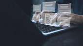 Zdjęcie "Marketing elektroniczny, centrum danych i reklama internetowa. Wysyłanie dokumentów drogą elektroniczną za pomocą poczty elektronicznej na laptopie." może być wykorzystywane do celów osobistych i komercyjnych zgodnie z warunkami zakupionej licencji Royalty-free. Obraz jest dostępny do pobrania w jakości wysokiej rozdzielczości do 5760x3840.