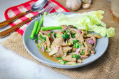 Sałatka z grilla, Isaan żywności w Tajlandii, lokalne jedzenie w Tajlandii.