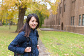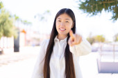 Piękna Chinka na świeżym powietrzu ze szczęśliwym wyrazem twarzy