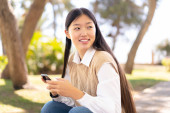 Zdjęcie "Piękna Chinka na świeżym powietrzu ze szczęśliwym wyrazem twarzy" może być wykorzystywane do celów osobistych i komercyjnych zgodnie z warunkami zakupionej licencji Royalty-free. Obraz jest dostępny do pobrania w jakości wysokiej rozdzielczości do 5760x3840.