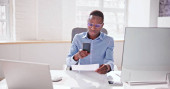 Biznesmeni trenują na komputerze. Młoda kobieta w biurze