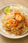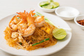 smażony makaron z krewetkami i kiełkami lub Pad Thai - azjatycki styl żywności