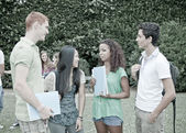 Zdjęcie "Grupa młodych studentów w parku" może być wykorzystywane do celów osobistych i komercyjnych zgodnie z warunkami zakupionej licencji Royalty-free. Obraz jest dostępny do pobrania w jakości wysokiej rozdzielczości do 5760x3840.