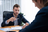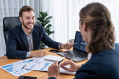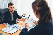 Zdjęcie "Zajęty zespół analityków w biurze analizujący analizę danych finansowych dla strategii marketingowej w obszarze roboczym przy użyciu pulpitu BI z wykresem i wykresem w celu poprawy wyników biznesowych. Podmiot" może być wykorzystywane do celów osobistych i komercyjnych zgodnie z warunkami zakupionej licencji Royalty-free. Obraz jest dostępny do pobrania w jakości wysokiej rozdzielczości do 5760x3840.
