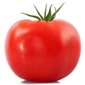 Czerwony świeży pomidor z zieloną łodygą izolowany na białym tle, widok z boku, Drukuj, szablon, element konstrukcyjny do pakowania. Realistyczna ilustracja wektora 3D. Naturalna tekstura