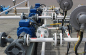 Rury sieci gazowej z zaworami i czujnikami ciśnienia sterującego