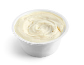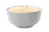 Miska ze smacznym serem śmietankowym na białym tle