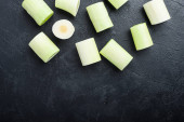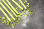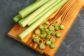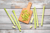 Zdjęcie "Deska z plastrami świeżego pora na zielonym tle" może być wykorzystywane do celów osobistych i komercyjnych zgodnie z warunkami zakupionej licencji Royalty-free. Obraz jest dostępny do pobrania w jakości wysokiej rozdzielczości do 5760x3840.