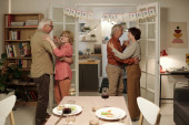 Dojrzałe i młode międzykulturowe kobiety kładące talerze i kieliszki do wina na stół w salonie przygotowując się do rodzinnej kolacji w weekend