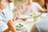 Zdjęcie "Starsza para trzymająca się za ręce przy świątecznym stole serwowanym z domowym jedzeniem i napojami podczas modlitwy przed rodzinną kolacją" może być wykorzystywane do celów osobistych i komercyjnych zgodnie z warunkami zakupionej licencji Royalty-free. Obraz jest dostępny do pobrania w jakości wysokiej rozdzielczości do 5760x3840.