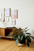 Zdjęcie "Część wnętrza przestronny salon nowoczesny apartament z szarą wygodną kanapą z poduszkami stojącymi między zielonymi roślinami" może być wykorzystywane do celów osobistych i komercyjnych zgodnie z warunkami zakupionej licencji Royalty-free. Obraz jest dostępny do pobrania w jakości wysokiej rozdzielczości do 5760x3840.