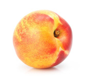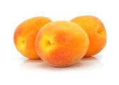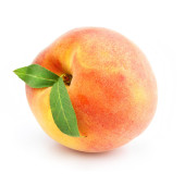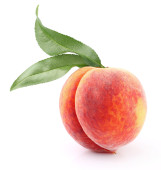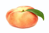 dojrzałych owoców brzoskwini z zielonych liści na białym tle