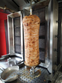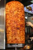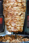 Pyszne kurczaki Doner Kebabs gotowanie na grillu na Festiwalu Smaków Adana Food w Adana, Turcja