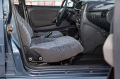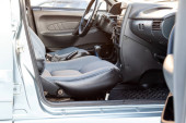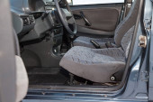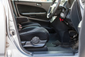 Czyste maty samochodowe z czarnego dywanu z pedałami gazu i hamulcami w warsztacie do detalowania pojazdu po praniu na sucho