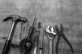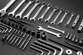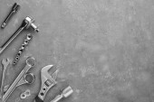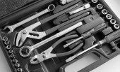 Klucze stalowe, szczypce, nasadki zapadkowe i śrubokręty w celu uzyskania widoku z góry skrzynki narzędziowej z tworzywa sztucznego
