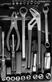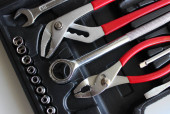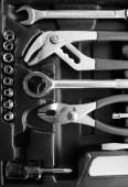 Zdjęcie "Klucze stalowe, szczypce, nasadki zapadkowe i śrubokręty w celu uzyskania widoku z góry skrzynki narzędziowej z tworzywa sztucznego" może być wykorzystywane do celów osobistych i komercyjnych zgodnie z warunkami zakupionej licencji Royalty-free. Obraz jest dostępny do pobrania w jakości wysokiej rozdzielczości do 5760x3840.