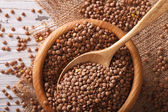 Zdrowa żywność koncepcja Niegotowane czarne oczy groszek zbliżenie na misce. Poziomy widok z góry z góry