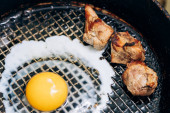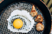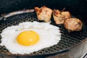 Smażone jajko kurczaka jest gotowane wraz z kawałkami szaszłyka