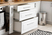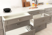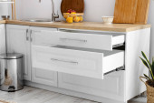 Zdjęcie "Biały licznik z szufladami w jasnej kuchni" może być wykorzystywane do celów osobistych i komercyjnych zgodnie z warunkami zakupionej licencji Royalty-free. Obraz jest dostępny do pobrania w jakości wysokiej rozdzielczości do 5760x3840.