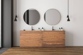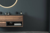 Zdjęcie "nowoczesne wnętrze łazienki z lustrem i lampą na szarej ścianie, renderowanie 3 d " może być wykorzystywane do celów osobistych i komercyjnych zgodnie z warunkami zakupionej licencji Royalty-free. Obraz jest dostępny do pobrania w jakości wysokiej rozdzielczości do 5760x3840.