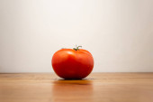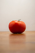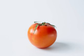 Jeden piękny, dojrzały, czerwony pomidor na białym tle.